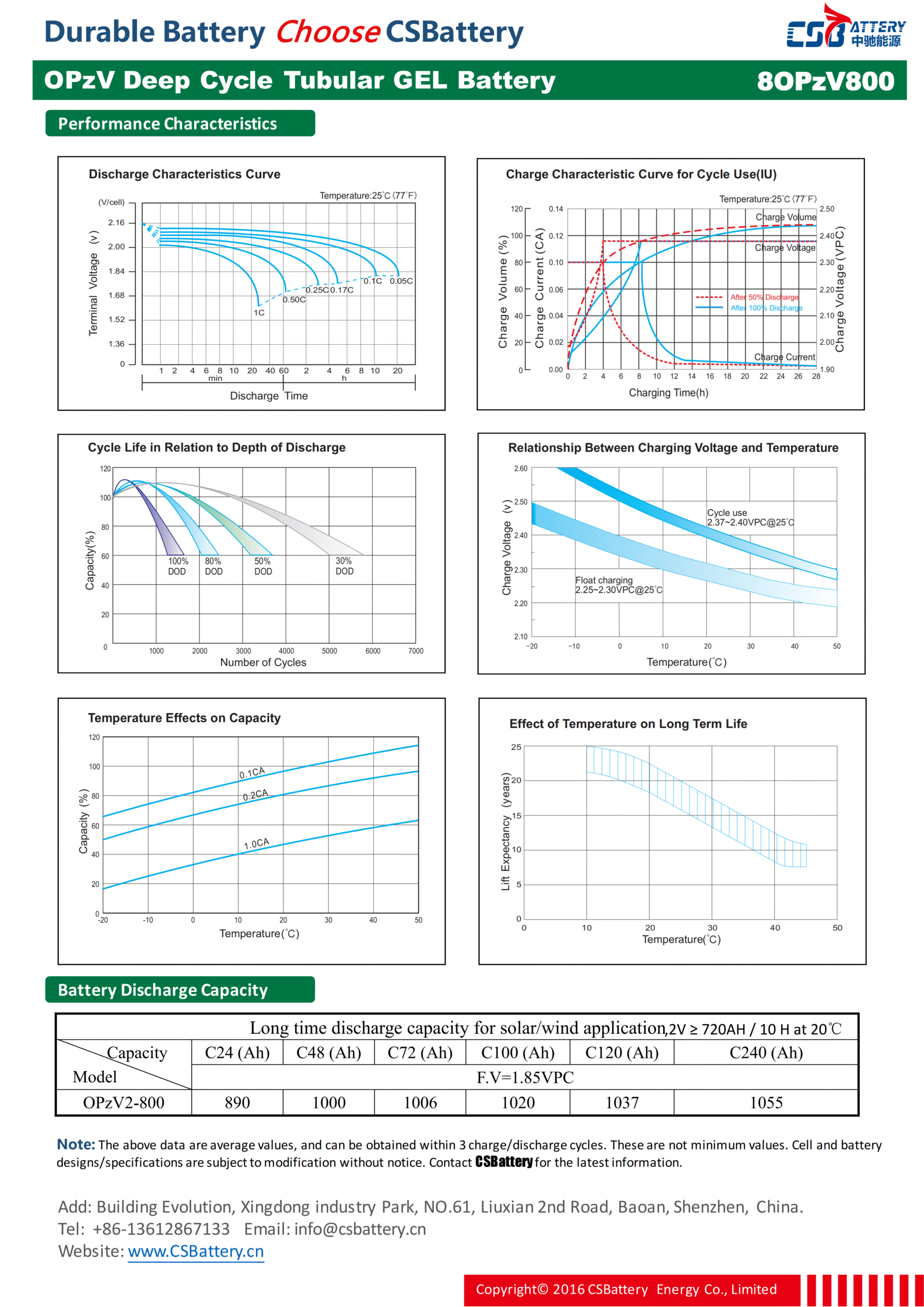 CSBattery OPzV-Produktionsanlagen mit langjähriger Erfahrung gewährleisten die zuverlässige Leistung, Sicherheit, hervorragende Batterielebensdauer und den Wert der röhrenförmigen OPzV-Gelbatterien. Jede Zelle ist werksgeprüft 100%. Es kann im Float- oder Deep-Cycle-Betrieb (2000 x 80%) verwendet werden und hat eine Lebensdauer von 20 Jahren bei 20 °C. Es kann bis zu 2 Jahre bei 20°C ohne Neuladung gelagert werden.